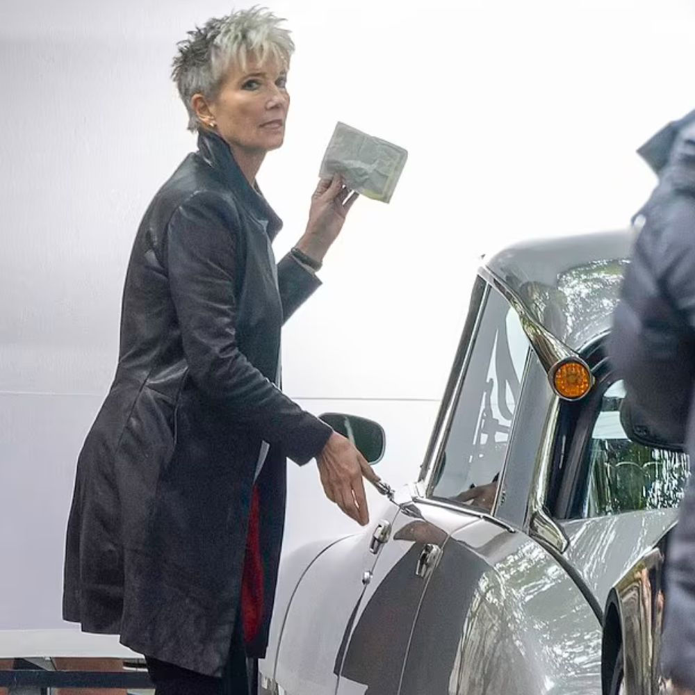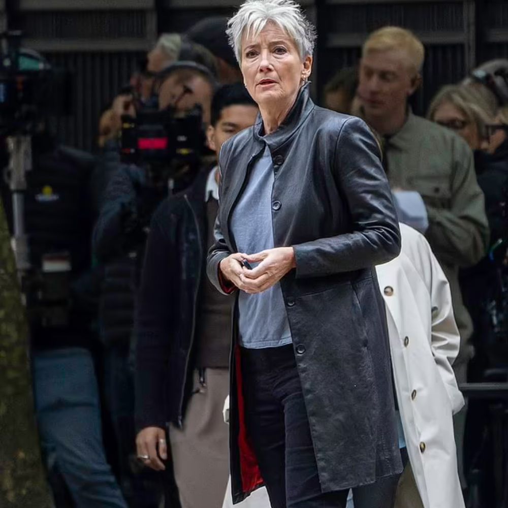 Emma Thompson’s portrayal of Zoë Boehm in Down Cemetery Road carries that mix of sharp wit and quiet strength, and her black leather coat is the perfect reflection of that energy. Zoë is a private detective with a past, navigating shadows and secrets with calm precision, so it makes sense that her wardrobe leans into something that feels both mysterious and composed. The Emma Thompson leather coat becomes more than outerwear — it’s part of her armor, a way of moving through a chaotic world with control and quiet defiance. Its noir-inspired edge connects to the classic detective look, paying tribute to film noir heroines who balanced vulnerability and power in equal measure.