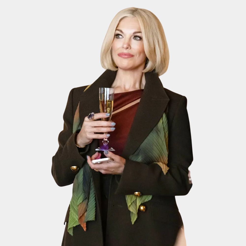 In The Woman in Cabin 10 Hannah Waddingham as Heidi wears a brown wool long coat that immediately establishes her as a figure of authority and intrigue. Heidi is the kind of character who carries herself with poise but also leaves you wondering about what lies beneath her composed surface. The long coat underscores that presence perfectly, giving her a commanding energy that fits the tension of the story. Wool as the fabric of choice connects to warmth and tradition, yet the darker tone and length transform it into something more powerful and cinematic. It is a piece that matches her role by blending elegance with mystery, letting her dominate a scene without saying a word.