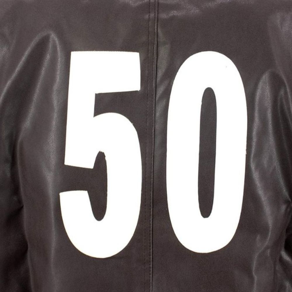 Crafted from durable yet lightweight materials, this jacket embodies a sleek mid-90s casual look, effortlessly blending retro charm with contemporary flair. The iconic number 50 emblazoned on the back proudly represents the 50 states of America, highlighting Alfred F. Jones’ larger-than-life persona as the embodiment of the United States in the series. Seen as a signature piece of his iconic style, this jacket symbolizes his boisterous, outgoing nature and his role as a spirited leader.