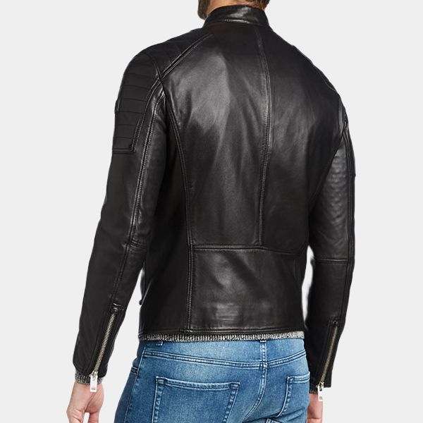 Made from quality genuine leather, this slimmer fit outerwear is stitched with perfection to maintain a style statement with minimalist design stature. Quilted shoulders and arms add safety gear while the snap tab collar gives a decent and elegant finish. A couple of zipped pockets provide storage space for phones and wallets.