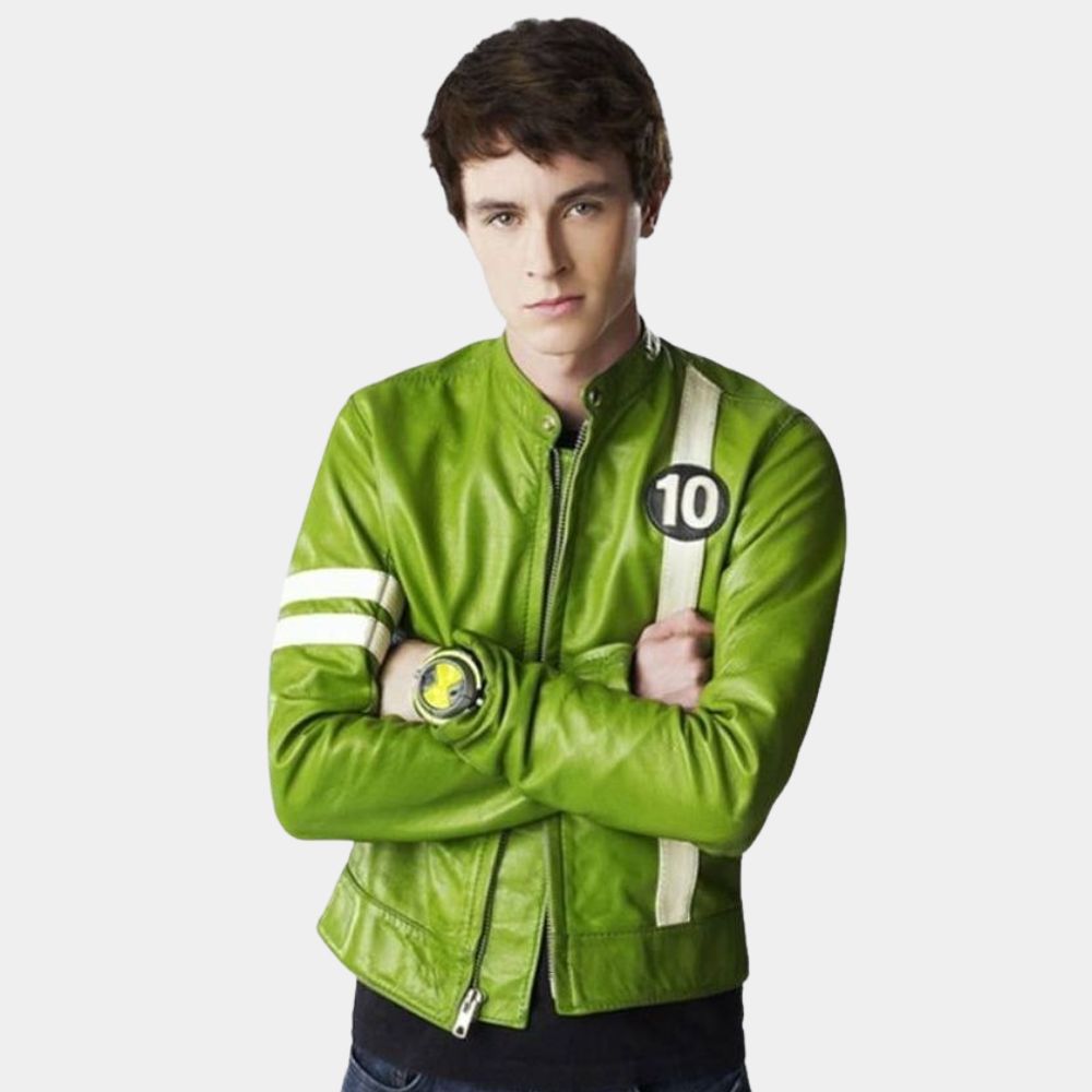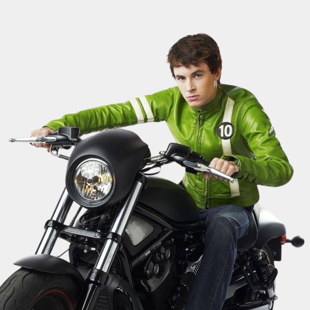Ben Tennyson’s green leather jacket from the live action Ben 10 movies, worn by Ryan Kelley, is a piece that instantly connects fans to the character’s adventurous spirit. Ben has always been about confidence, energy, and a little bit of teenage bravado, and this jacket embodies all of that. It reflects his iconic green color scheme that has been a staple of the franchise since day one, making it a natural extension of his Omnitrix powered identity. The jacket feels youthful and bold, just like Ben himself, and it matches his story as a kid who shoulders massive responsibility while still holding onto his playful personality.