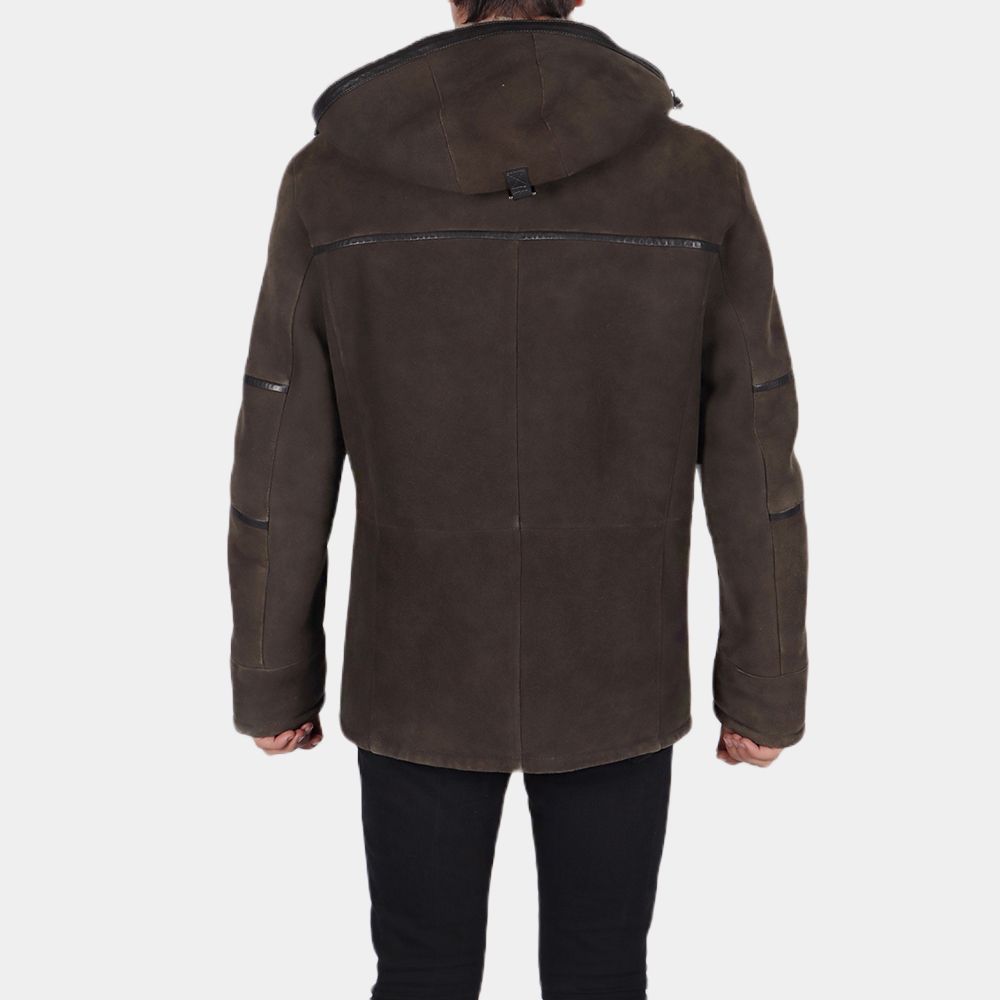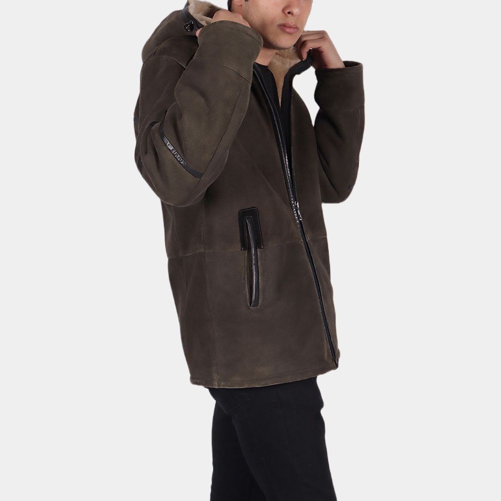 Brown Suede Leather Hooded Jacket