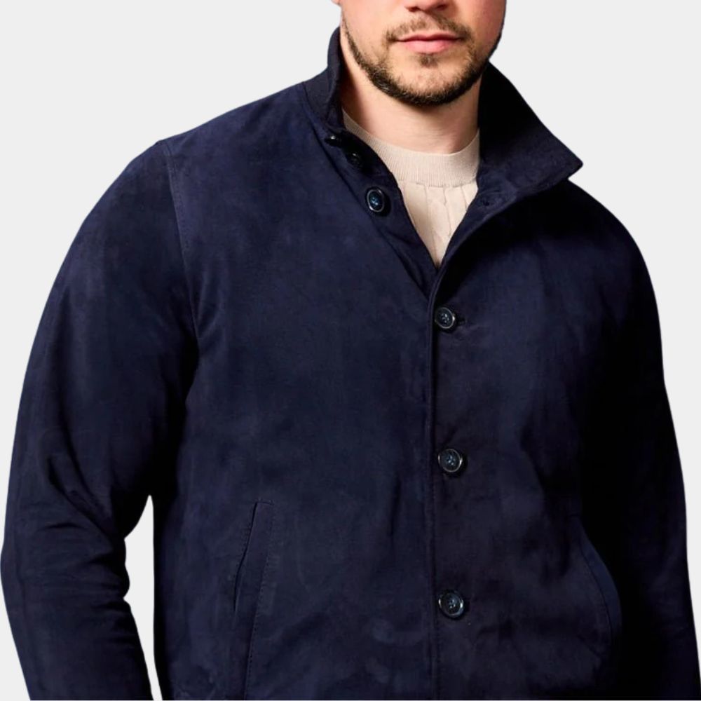 Colin Farrell’s character David in A Big Bold Beautiful Journey is one of those roles where the outer layer really speaks for the man inside. He’s reserved yet quietly magnetic, carrying a sense of mystery that pulls you in without effort. That same understated confidence is mirrored in this blue suede bomber—it’s not loud, but the moment you lay eyes on it, you know it’s special. As for its influence? The bomber jacket traces back to military roots, becoming a cult favorite in Hollywood as icons started wearing them both on and off screen. What’s great about this piece is how it bridges that heritage with contemporary styling—perfect for someone who likes their wardrobe to have history and personality.