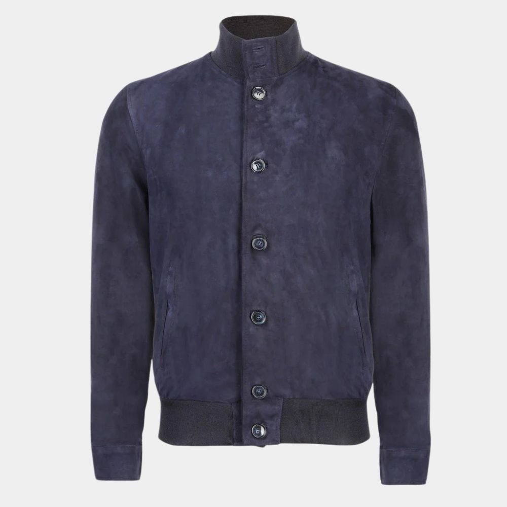 A Big Bold Beautiful Journey – David (Colin Farrell) Blue Suede Leather Bomber Jacket