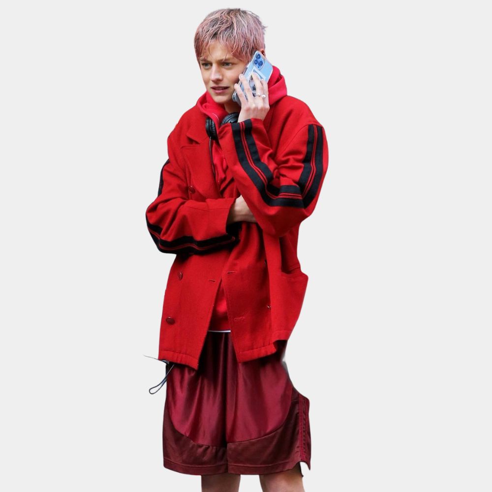 The Darby Hart Red Jacket, as seen in “A Murder at the End of the World,” worn by the talented Emma Corrin, is a stunning and captivating piece of outerwear that effortlessly blends classic elegance with contemporary allure. This double-breasted coat is a fashion statement that’s sure to leave a lasting impression.Crafted with meticulous attention to detail, this coat features a rich and vibrant shade of red that demands attention. The color is bold and confident, making it an ideal choice for those who want to make a statement with their style.
