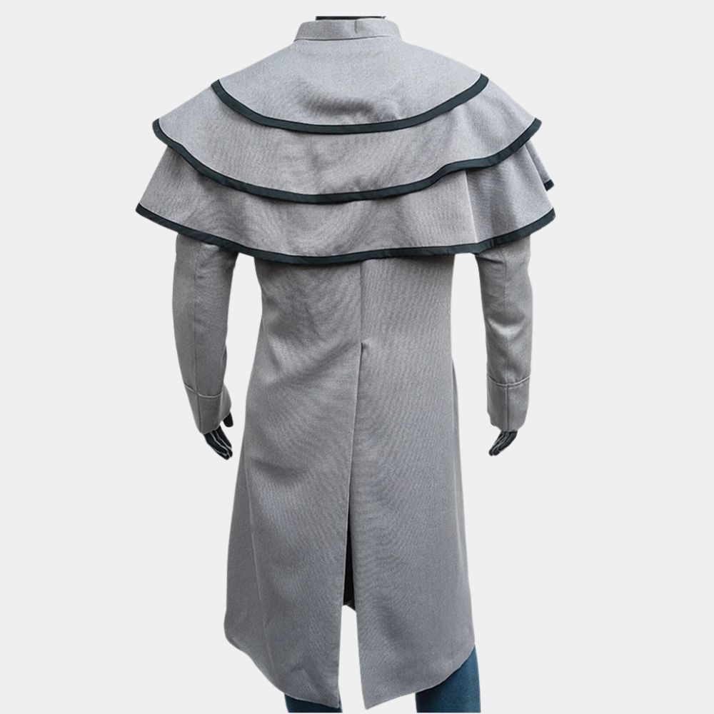 The design of the coat leans on classic 19th century tailoring, with a long drape, structured shoulders, and button closure that makes it functional while still polished. Wool as a fabric grounds it in authenticity, since it was a staple for warmth and durability in the period. Coats like this trace their origins back to European outerwear, making Schultz’s choice not only historically accurate but also a reflection of his cultured background. Its significance lies in how it visually separates him from other characters, underlining his outsider status and composed demeanor. For fans, this coat works beautifully at historical reenactments, cosplay events, or even as a bold winter piece for those who want to channel a mix of sophistication and frontier grit.