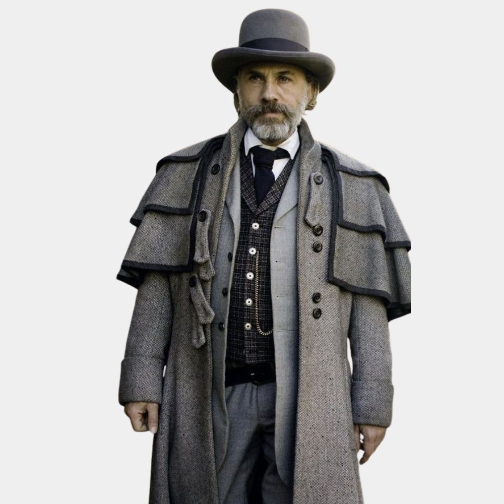 In Django Unchained Dr King Schultz, played by Christoph Waltz, makes a lasting impression not only through his wit and sharp dialogue but also through his wardrobe. His long grey wool coat is central to that image, giving him the presence of a man who operates outside of the brutal norms of the Old West. It’s refined without being flashy, intellectual yet practical, and perfectly reflects his role as a bounty hunter with a sense of civility. The coat matches Schultz’s character by signaling his European sophistication and calm authority, setting him apart from everyone around him in a lawless, chaotic world.