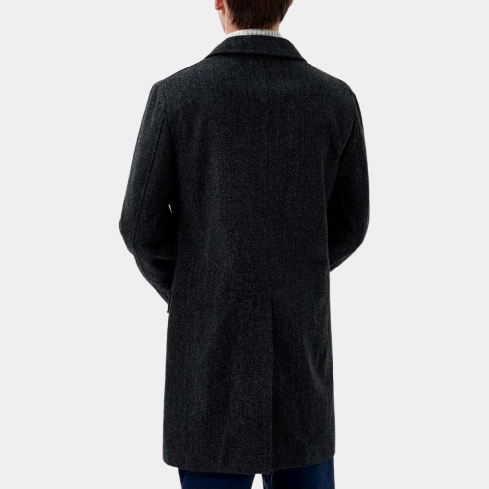 Kevin Costner aka Hayes Ellison Black Wool Overcoat