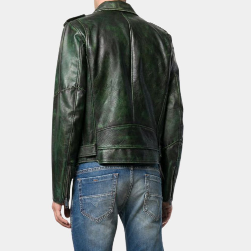 AEW Star Vintage Green Leather Biker Jacket