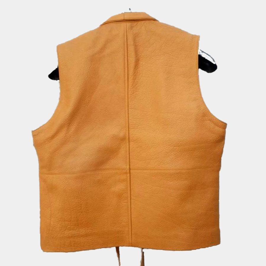 This Bonanza’s lorne greene stunning vest is crafted using top-quality authentic leather. To give smooth wear, the inner side is lined with soft viscose. Shawl lapel collars with drawstring buttons combined with tan brown color are the distinctive protagonist ben cartwright facet. Relive the classic with the everlasting sleeveless vest by SAFYD!