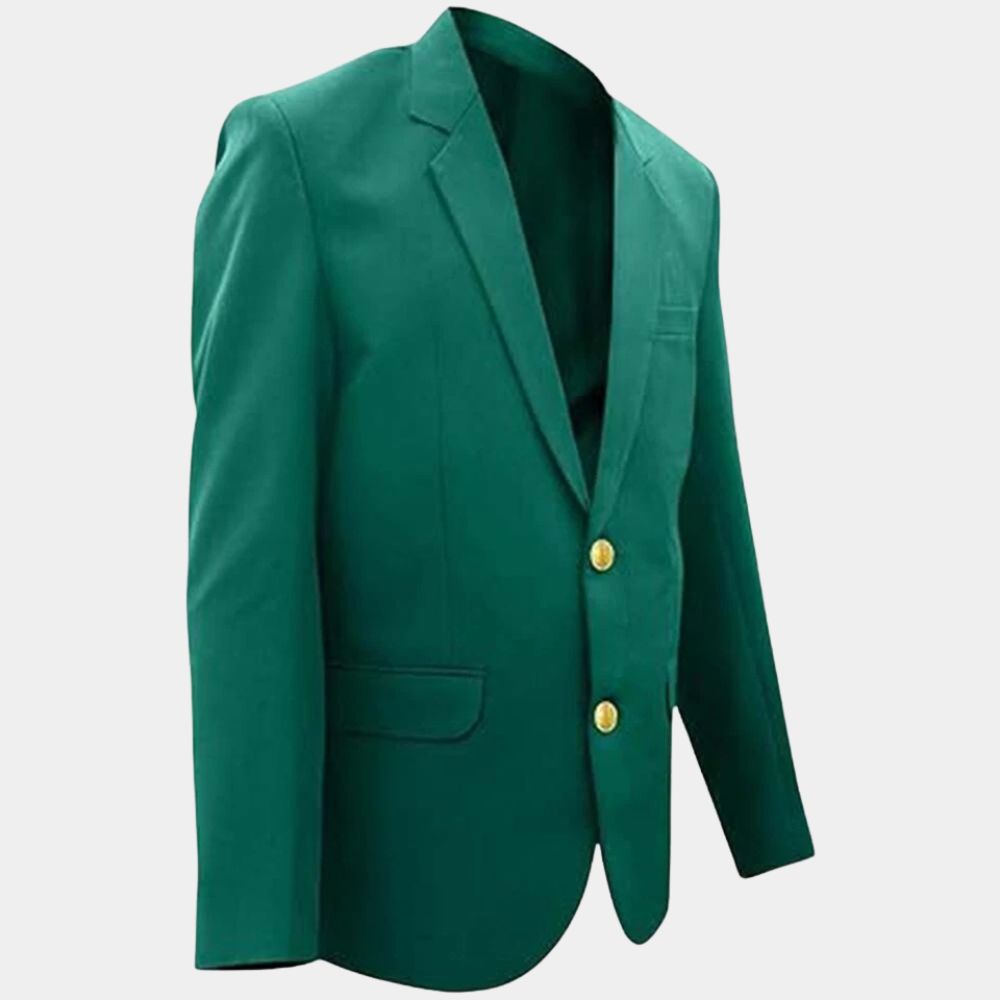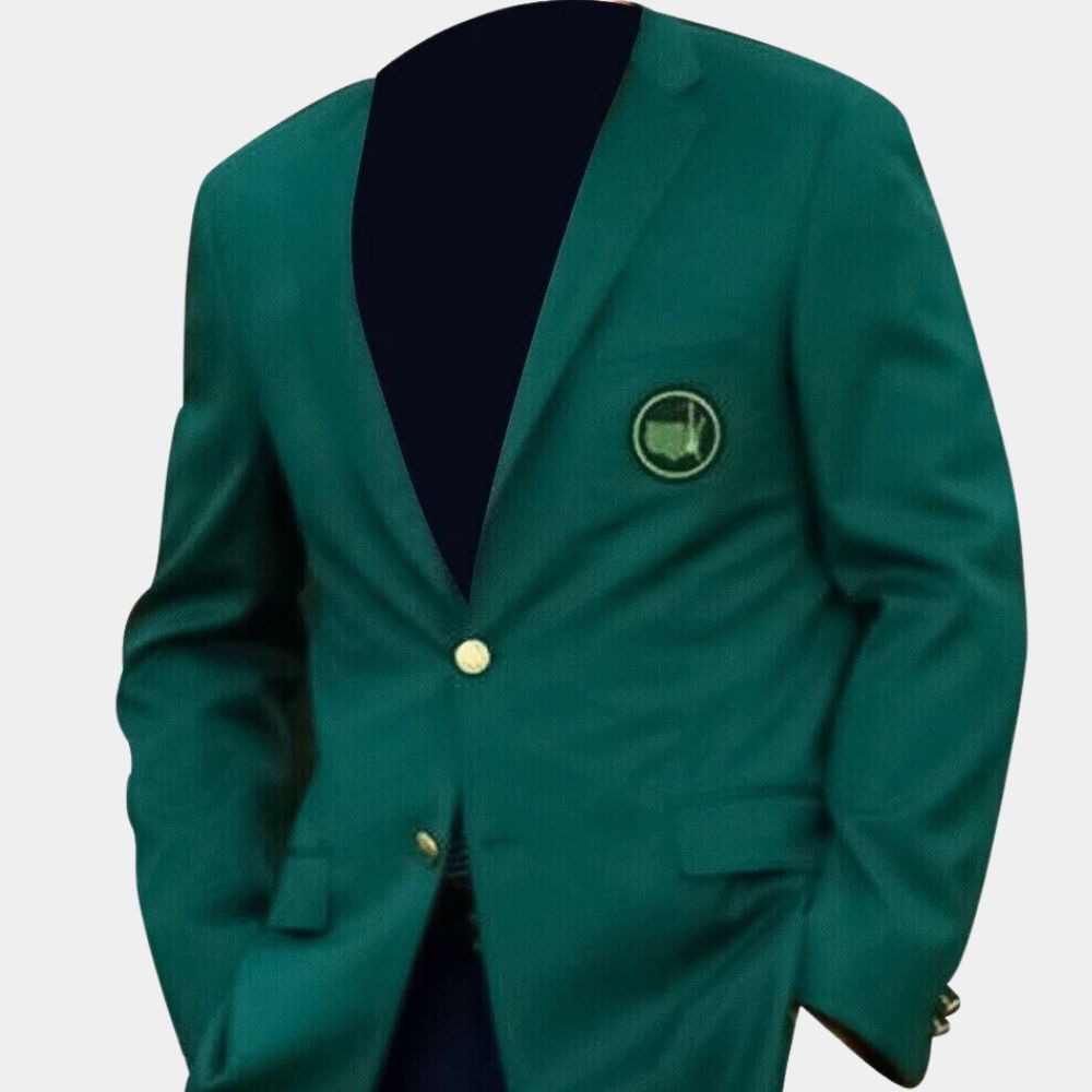 The coat itself is cut in a sharp sport style, designed to look polished yet approachable. Its green color was chosen to match the lush grounds of Augusta and set it apart as something unique to the tournament. With notched lapels, a two button closure, and the Masters insignia embroidered on the chest pocket, it carries a balance of sophistication and exclusivity. Sport coats like this have their roots in classic menswear, but here the design takes on added meaning as a mark of victory. For fans, a piece inspired by the Masters green jacket works well at formal gatherings, golf events, or even as a collectible to celebrate the tradition of the game.