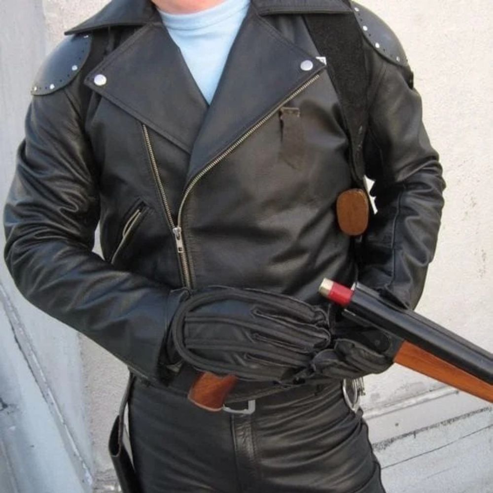 Mad Max 1979 Max Rockatansky Biker Leather Jacket Highlights Black Large lapel collars Metallic studs on collar Round leather patch on the shoulder Asymmetric zipped front opening Welt pockets with zips Style & Fit 70% Loose fit Body fit True to Size:Â please check our size chart. Considered a Regular […]