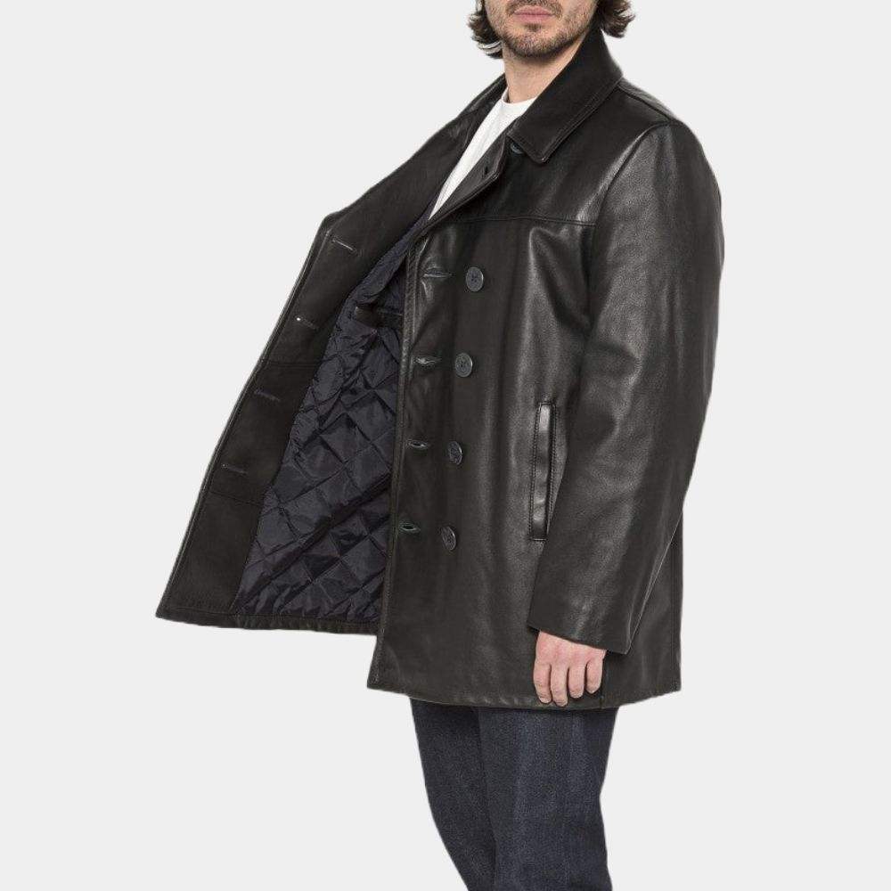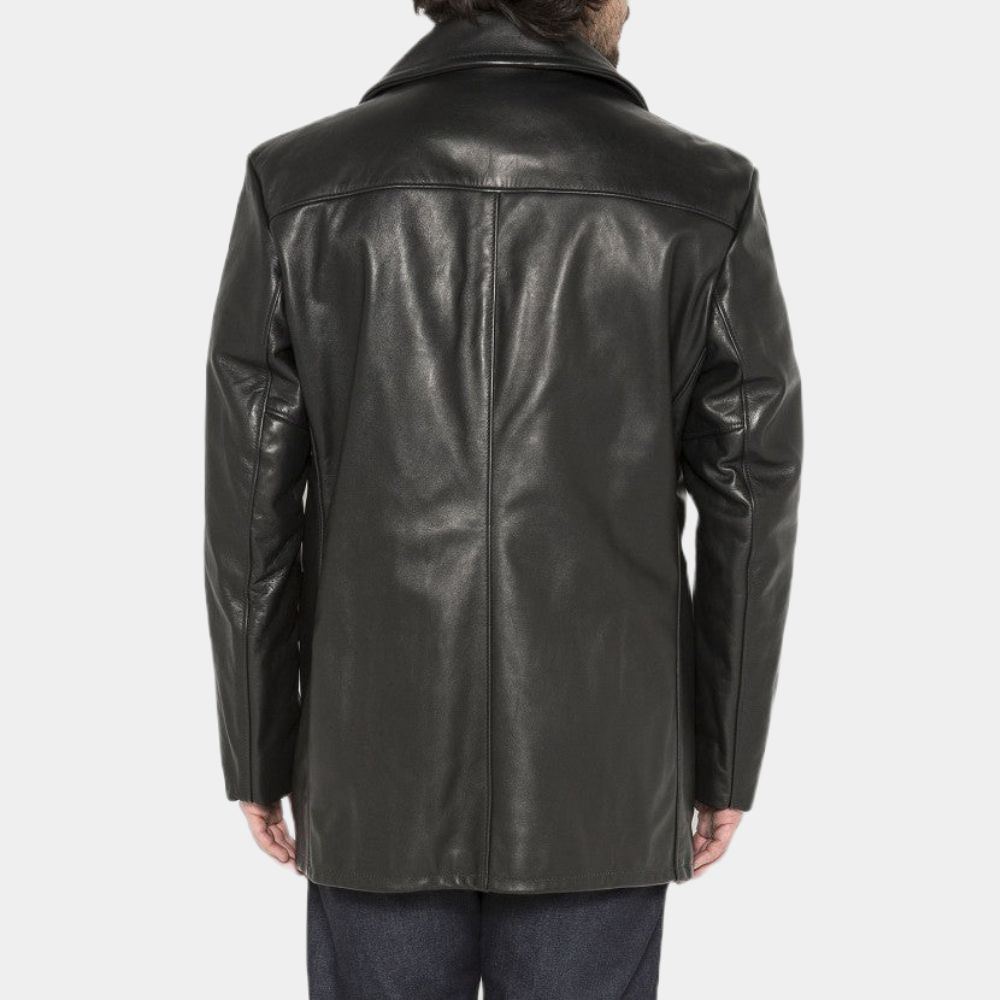 Negan Black Leather Peacoat
