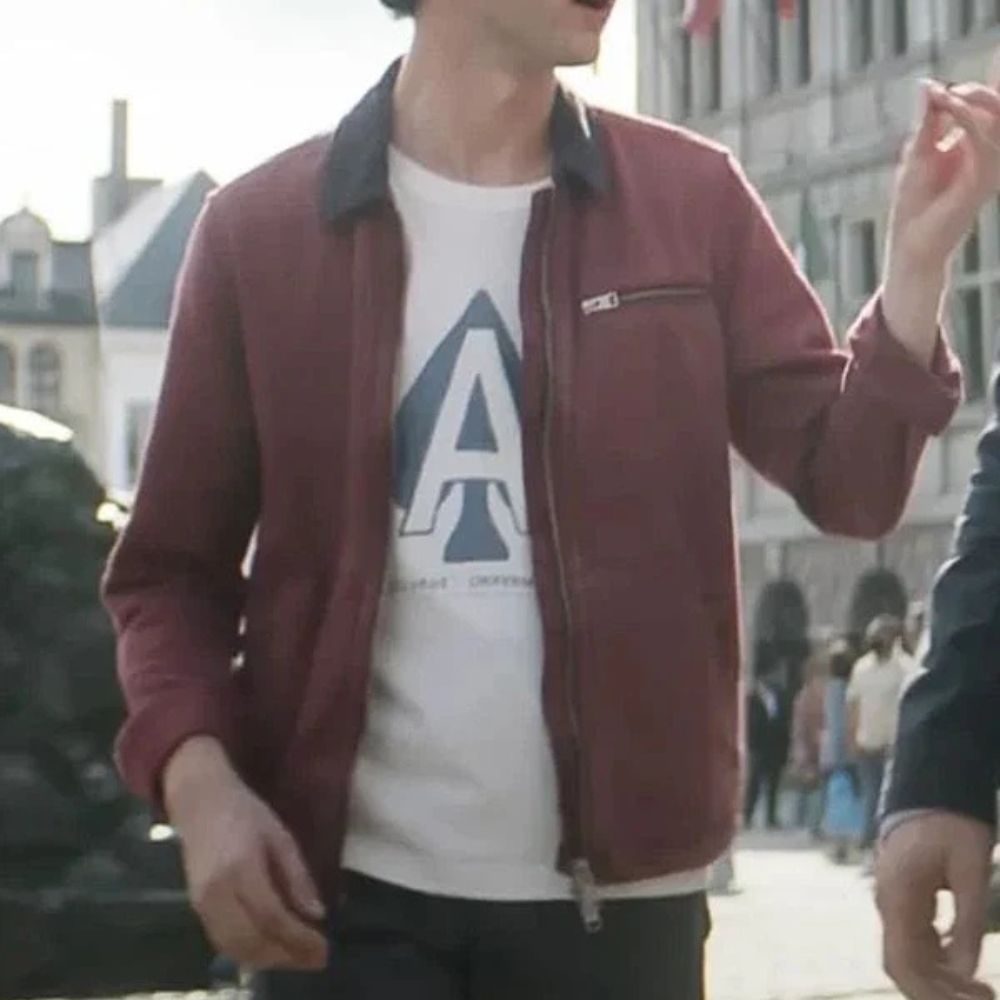 Dominic Sessa’s Bosco in Now You See Me: Now You Don’t brings a mysterious, sharp energy to the screen, and his maroon jacket feels like an extension of that persona. Bosco is clever, unpredictable, and always one step ahead, and his wardrobe mirrors that mix of confidence and secrecy. The jacket’s color choice adds a sense of depth to his presence—it’s bold but not loud, stylish but practical, fitting perfectly for a character who moves through chaos with control. The look ties into the film’s overall theme of illusion and deception, where even something as simple as a jacket becomes part of the act—sleek, composed, and hiding more than it reveals.