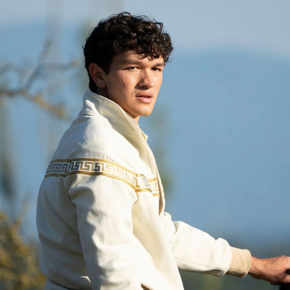 The recreated Luke Castellan white track jacket from Percy Jackson and the Olympians 2025 taps right into the character’s mix of charm, confidence, and underlying unpredictability. Luke has always carried that golden boy energy on the surface while hiding much heavier motives underneath, and this jacket plays into that contrast. White keeps him looking polished and approachable, almost like the ideal camp counselor everyone trusts, while the sporty vibe nods to his quick reflexes, demigod agility, and his years training at Camp Half Blood. The design takes cues from early 2000s athletic wear, the era when the original book series dropped, so the jacket feels both nostalgic and perfectly timed with Luke’s story arc.