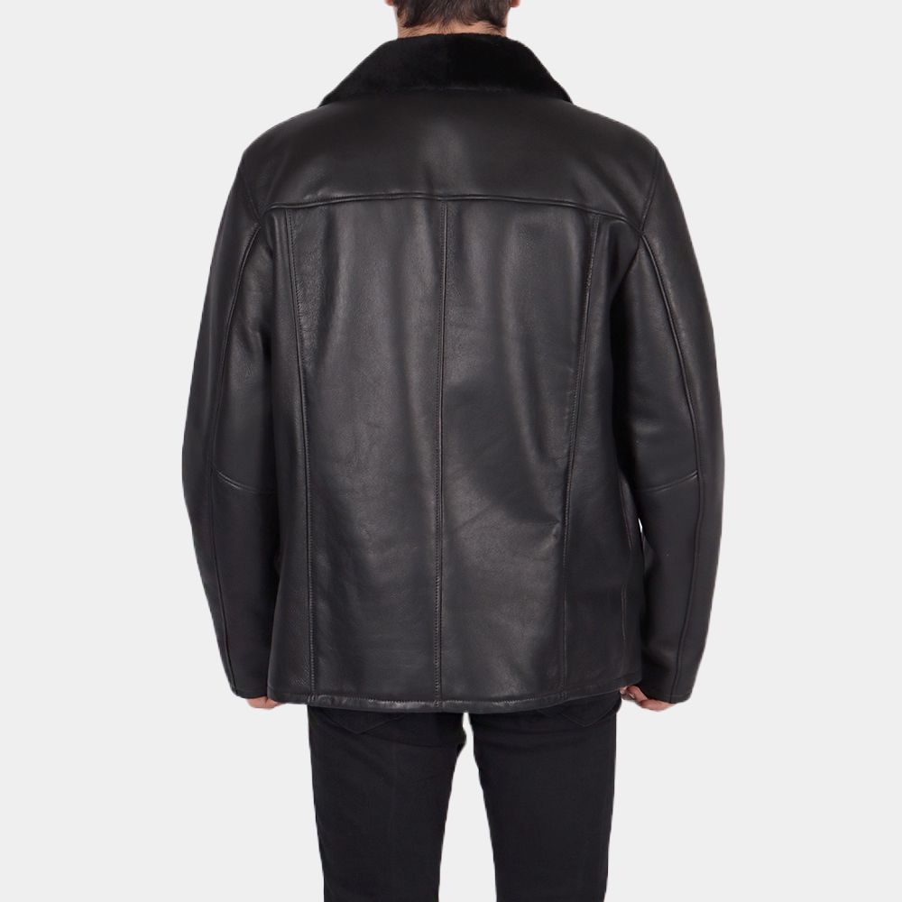 Black Leather Shearling Collar Jacket