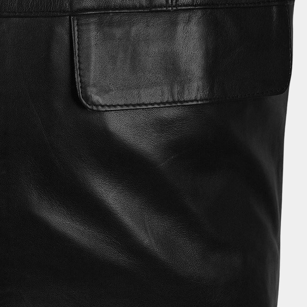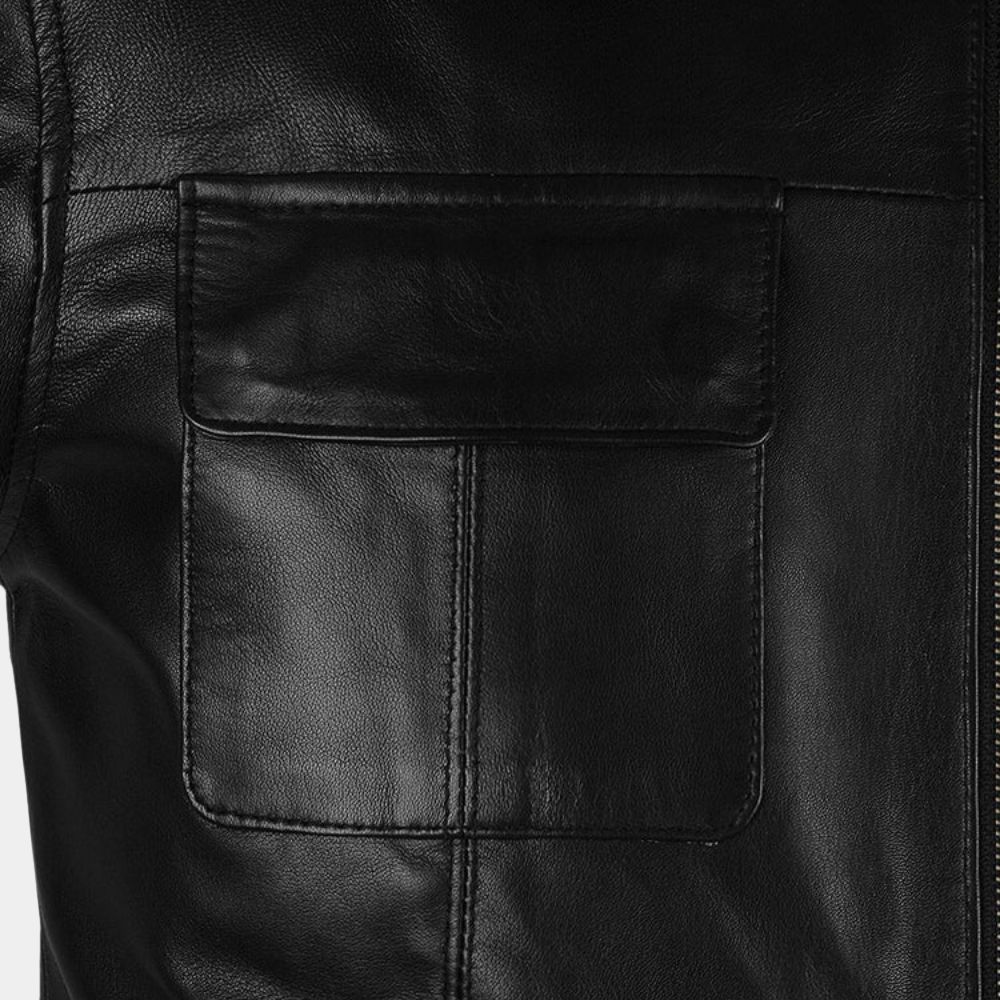 Constructed from high-quality black leather, the jacket exudes a sense of durability and luxury. The 3/4 length design adds a touch of versatility, making it suitable for various occasions. The front of the jacket is adorned with a stylish zipper closure, adding a contemporary edge to the classic design. The leather used is not only visually appealing but also promises long-lasting wear, ensuring that this jacket becomes a staple piece in your wardrobe for years to come.