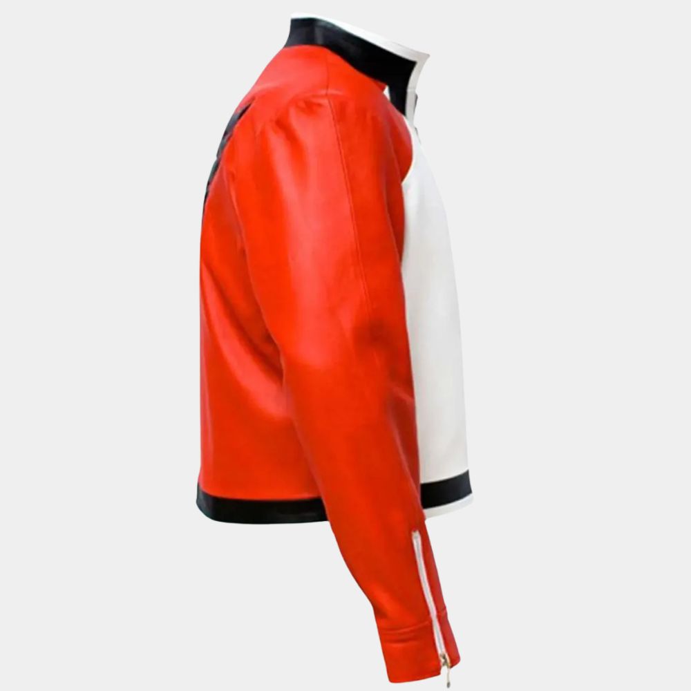 The design brings together striking red leather panels with crisp white accents that make the jacket pop on screen. Details like the zip front, structured collar, and fitted cut keep it functional for action, while the contrast between colors adds a dynamic, youthful edge. Jackets like this come from the lineage of biker and streetwear styles that became linked with rebellion and individuality, which is why it fits Rock so well. Its significance lies in how it turns a classic leather look into something unmistakably tied to his character. For fans, this jacket works perfectly at conventions, cosplay events, or even casual outings where you want a statement piece that carries both gaming nostalgia and undeniable style.