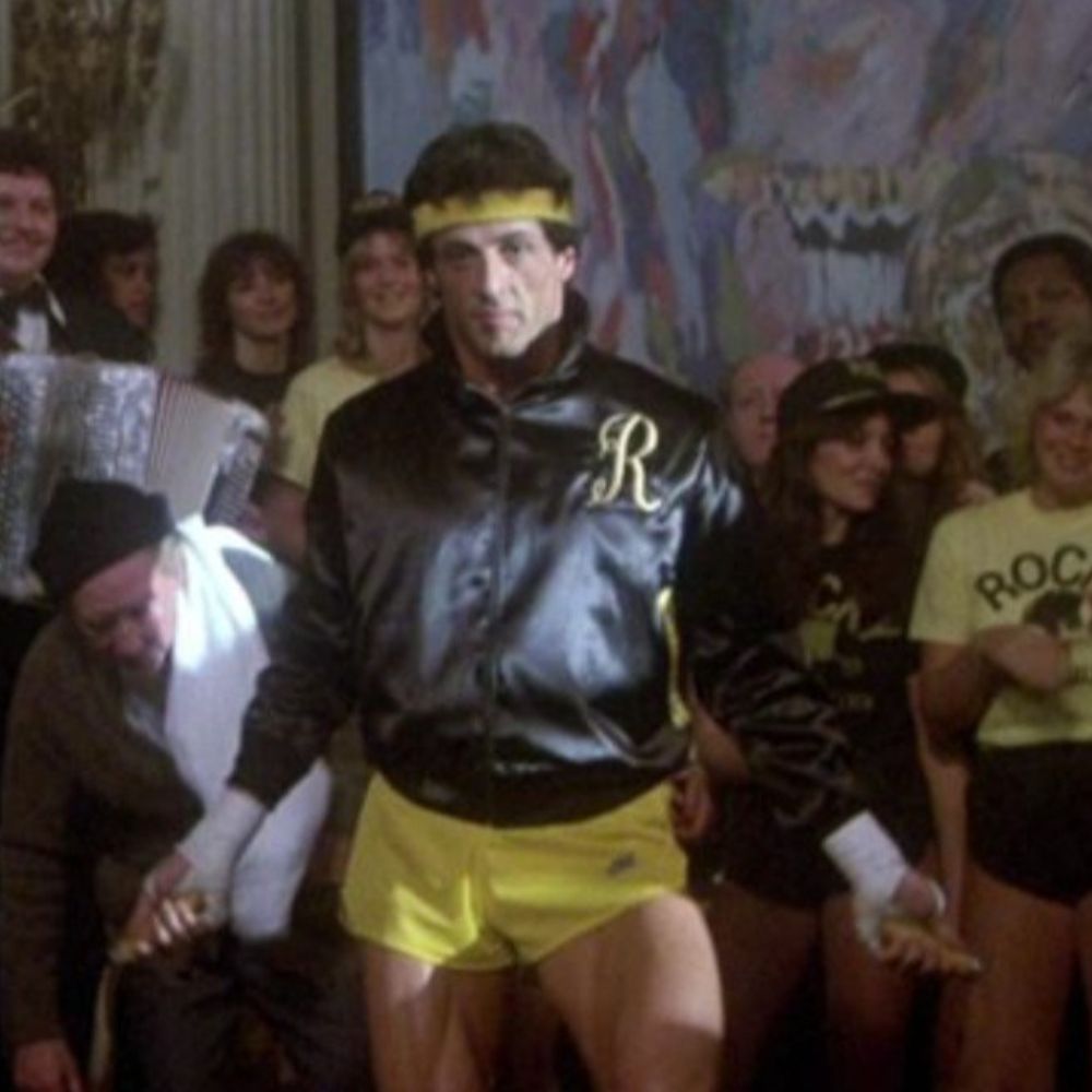 In Rocky III Sylvester Stallone as Rocky Balboa wears a black satin jacket that feels like the perfect reflection of his rise from underdog to icon. By this point in the story Rocky is no longer just a fighter in the ring but a larger than life figure who represents determination and triumph. The jacket captures that shift, carrying the smooth confidence of someone who has earned his place in the spotlight while still staying connected to his roots. It matches the character because it balances flash with humility, reminding viewers that while Rocky has success, his grit and heart remain unchanged.