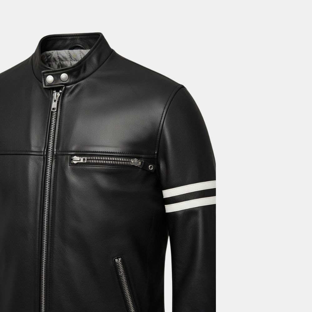 Christopher Guest Black Cafe Racer Leather Jacket