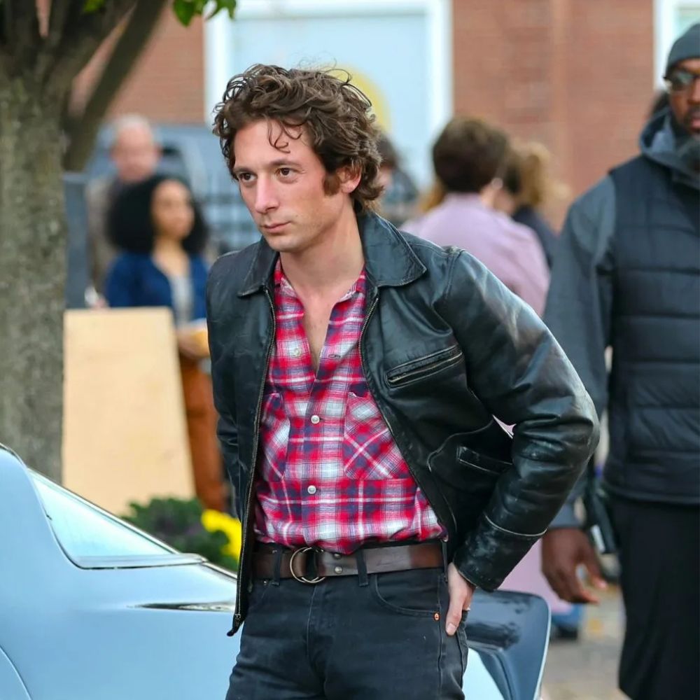 Jeremy Allen White stepping into the shoes of Bruce Springsteen in Springsteen: Deliver Me from Nowhere feels like a perfect match—and Springsteen black leather jacket captures everything about that era of raw energy and heartland grit. Springsteen’s style was never about flash; it was about authenticity, the working-class edge that mirrored his music. The Bruce Springsteen leather jacket became almost an extension of his persona, representing rebellion, resilience, and the blue-collar soul behind songs like Born to Run and Darkness on the Edge of Town. Jeremy’s version of the look pays tribute to that spirit, grounding the character in the simplicity and strength that made Bruce an icon.