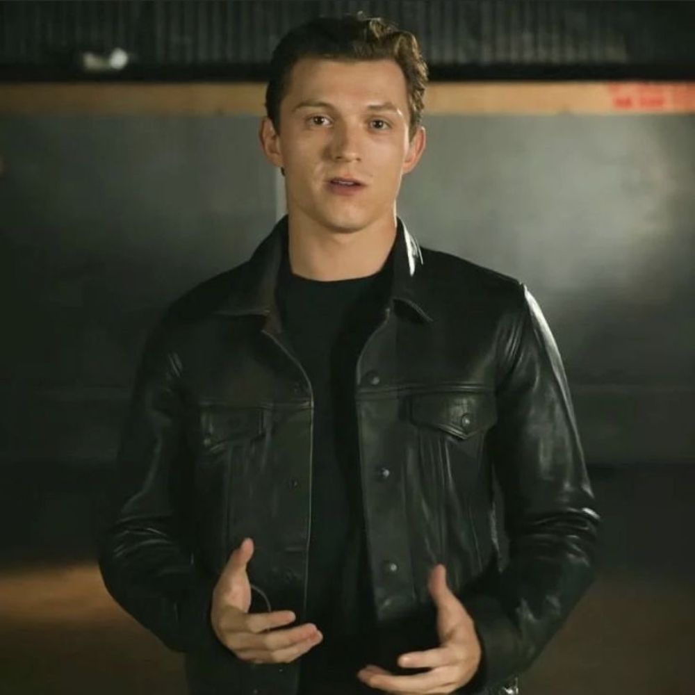 Nathan Drake aka Tom Holland Trucker Style Black Leather Jacket