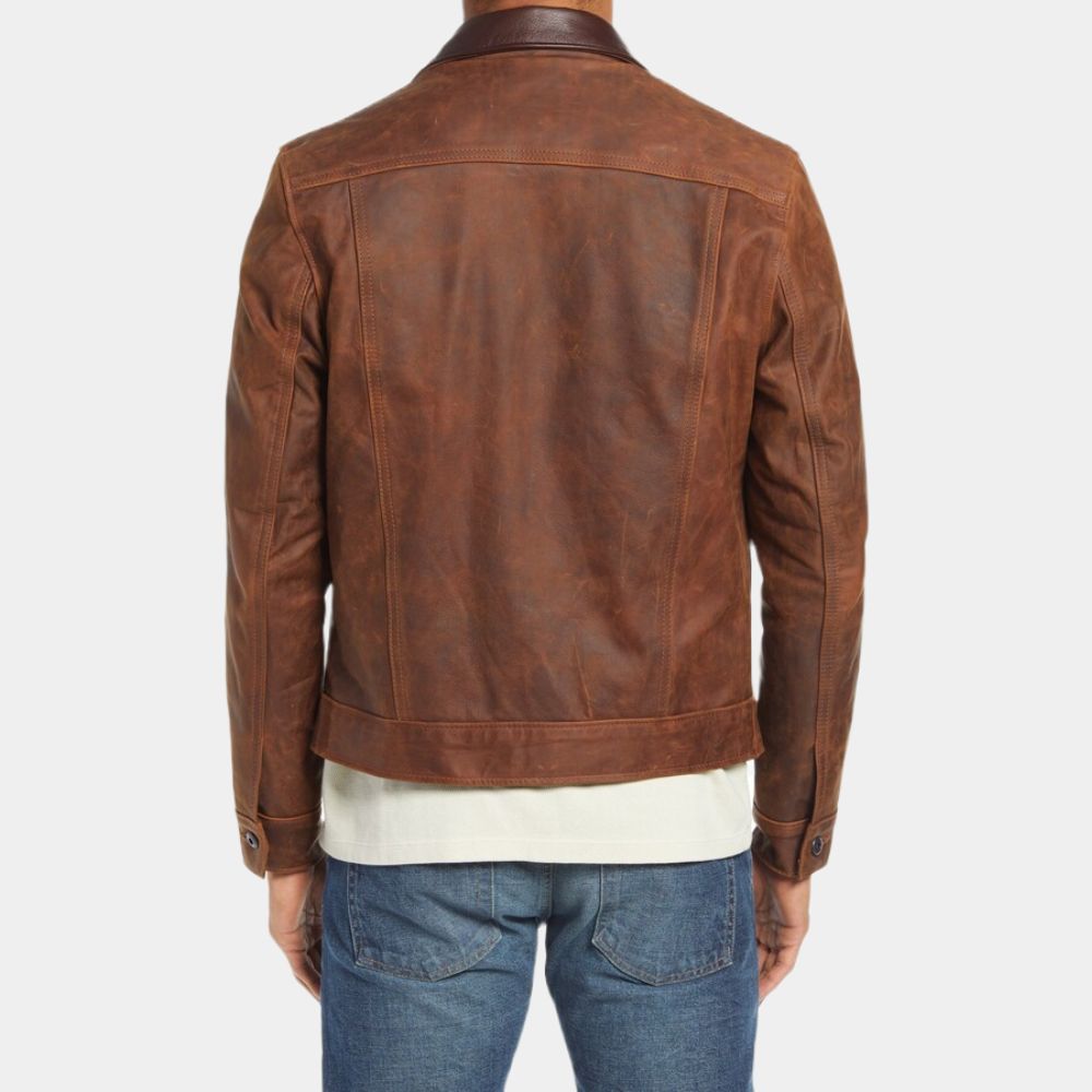 Men’s Brown Suede Leather Trucker Style Jacket