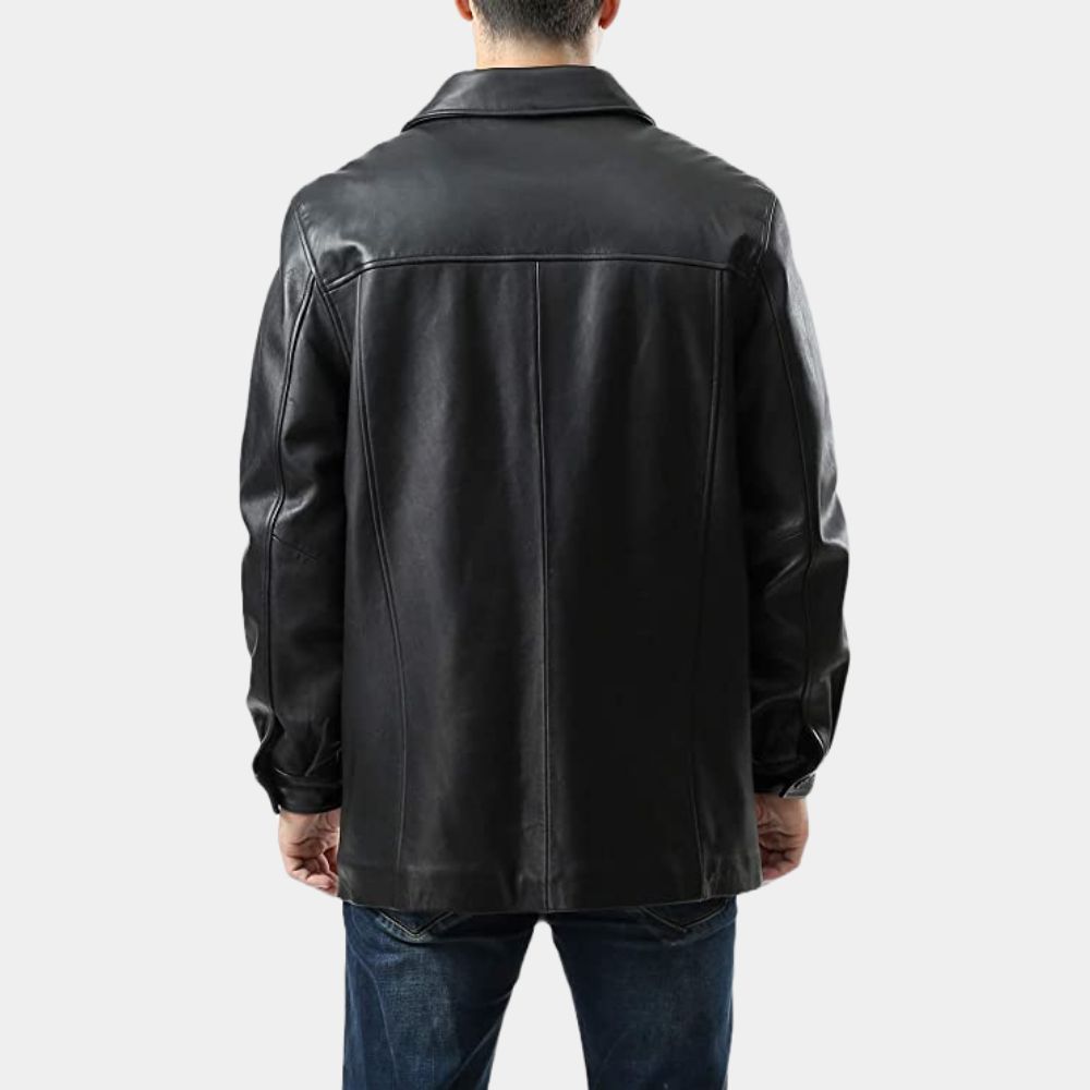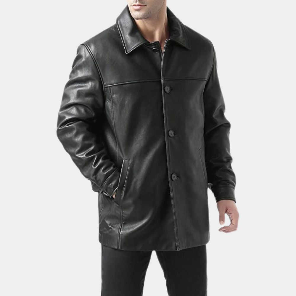 A slightly oversized leather jacket aka car coat with minimal adornments is definitely a style treat for the bolds. Shirt collar with button closures and straight hem cuffs add to the simple badass look. Made using the highest quality leather, the high street fashion staple will become a durable and timeless addition to your collection of casual attires.