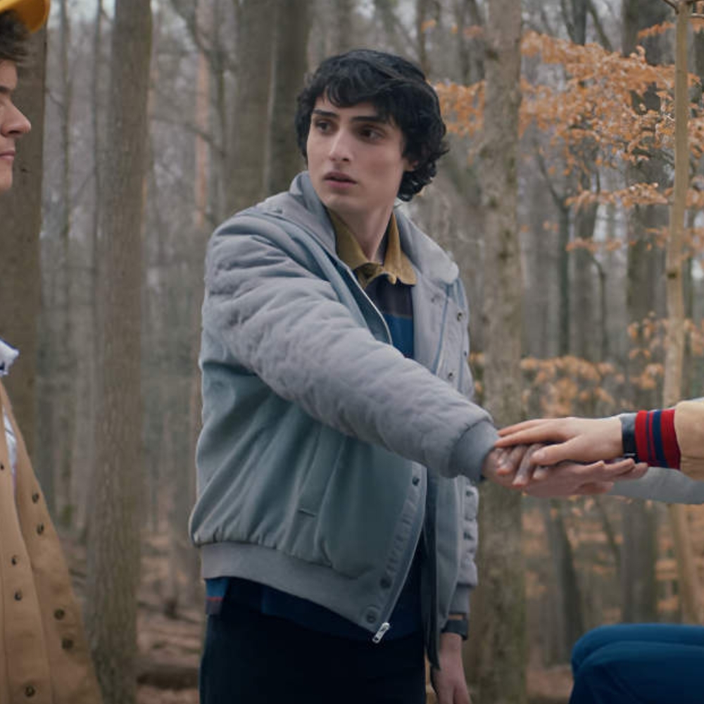 The grey tone mirrors Mike’s steady, grounded personality—calm but ready for action—while the subtle touches of red pop in a way that reflects the intense, emotional stakes of Season 5’s finale. It’s like the jacket tells a story: worn by a kid who’s grown up fast but still holds onto his brave heart.