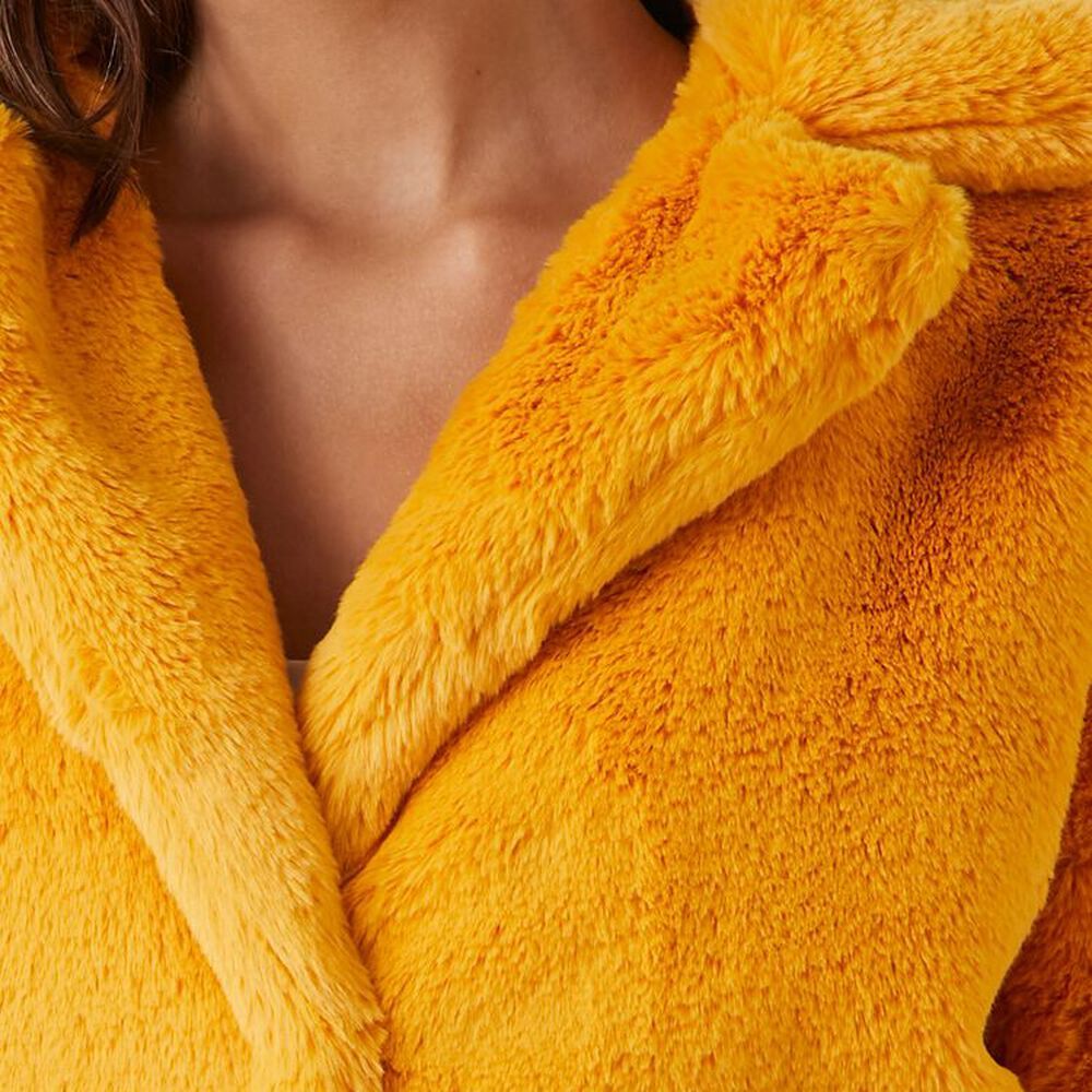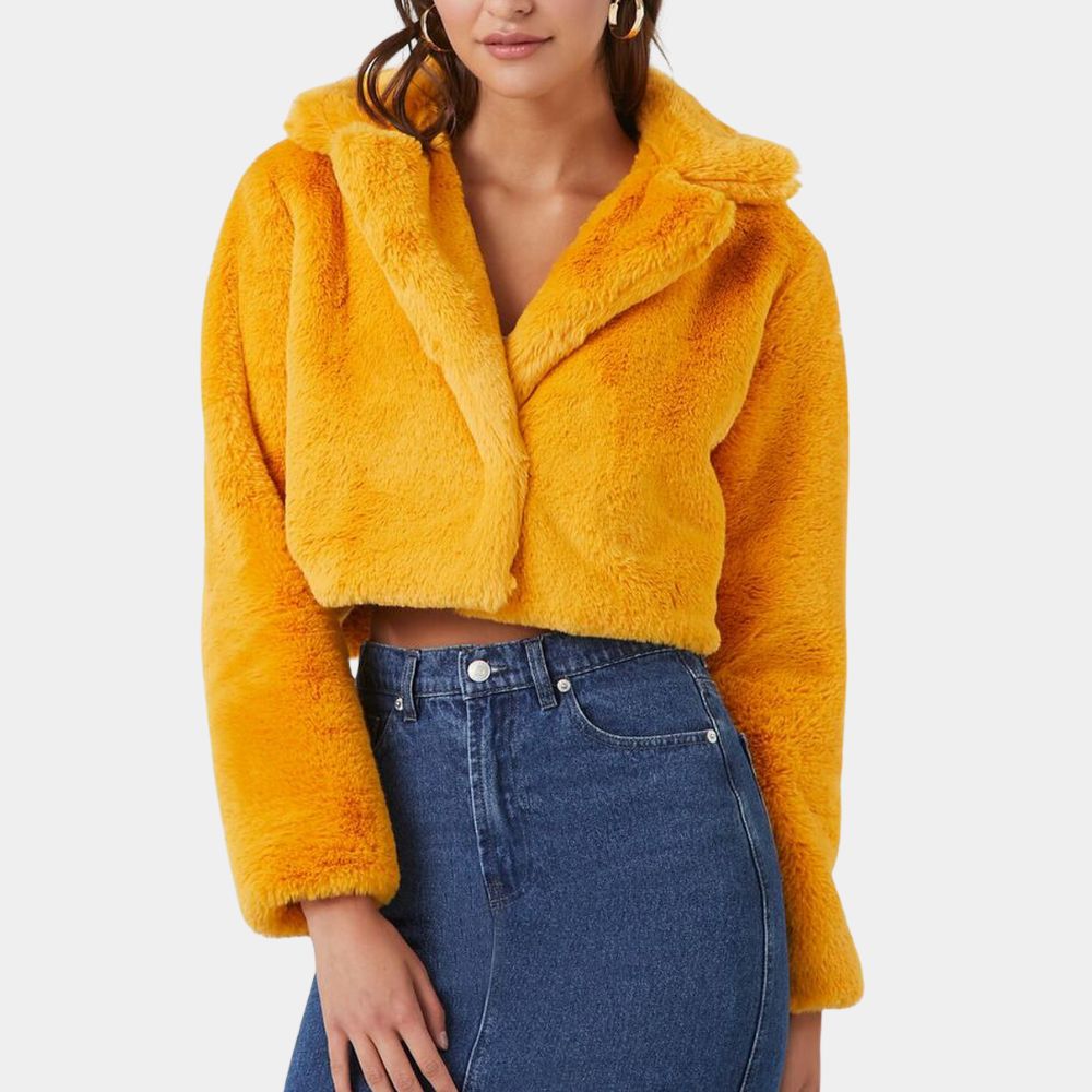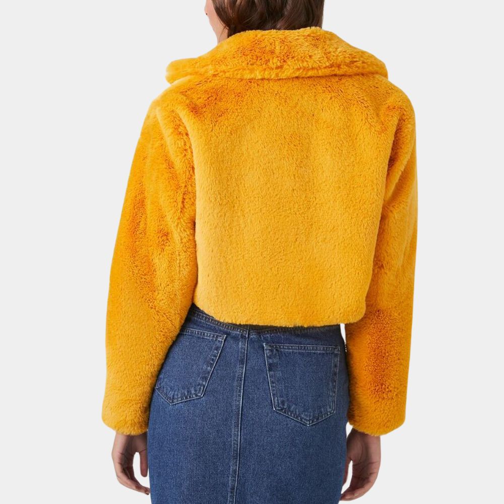 Crafted from ultra-soft faux fur fabric, this jacket not only offers warmth but also a luxurious feel that makes it a versatile addition to any wardrobe. Its cropped silhouette enhances the figure, adding a modern twist that pairs effortlessly with high-waisted jeans or layered over a flowing dress, making it suitable for both casual outings and more polished occasions.