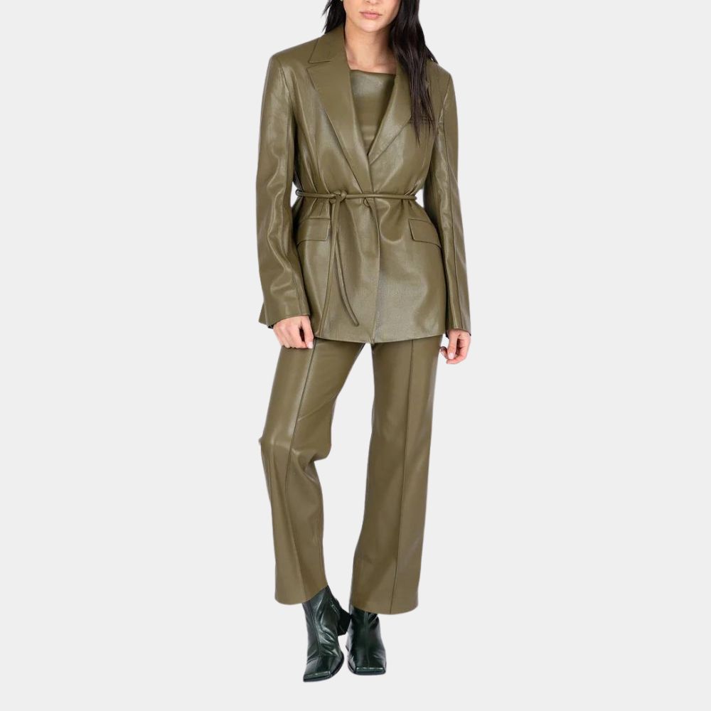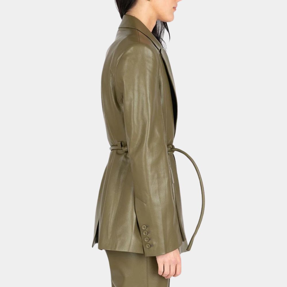 What makes the Ingrid leather blazer truly unique is its ability to blend classic elegance with a bold yet contemporary vibe. The sharp lapels but contemporary and minimalist detailing reflect a clean, polished aesthetic, while the luxurious olive green real leather adds an element of intrigue and boldness. This isn’t just a blazer—it’s a symbol of confidence and individuality, perfect for those who want to stand out in any crowd. Whether you’re a fan of A Different Man or just looking for a blazer that makes a statement, the Ingrid leather blazer is designed to turn heads and elevate your wardrobe. Wear it, and you’ll feel like you’re stepping into a world of sophistication and enigmatic allure.