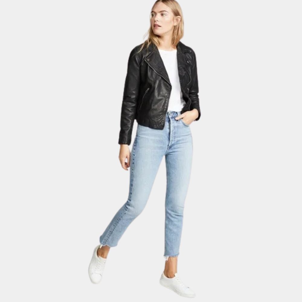 The Menu Margot Mills Black Leather Jacket Highlights Black Lapel style collar Asymmetrical zipper closure Zipper cuffs Full length sleeve jacket Two side pockets, two inner pockets Style & Fit 70% Loose fit Body fit True to Size: please check our size chart. Considered a Regular Fit; please select your […]