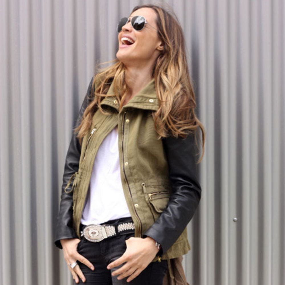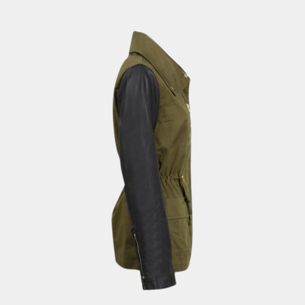 Green Cotton Parka Jacket with Leather Sleeves