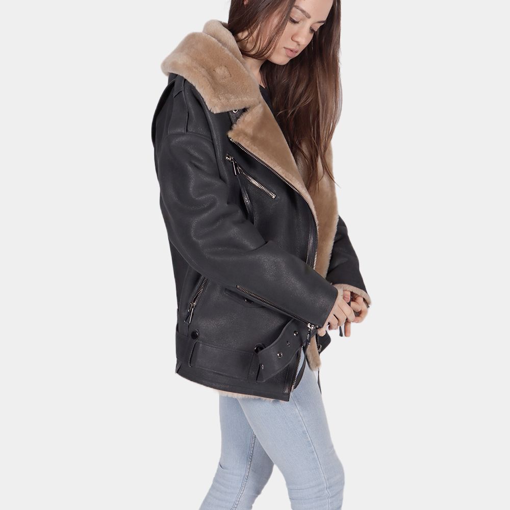 Aviator Jackets with shearling lining are not only warmer but also a source for an elegant and luxurious look. The vintage Cara leather shearling jacket is the epitome of SAFYD’s vast fashion sense and will surely uplift the fashion field.