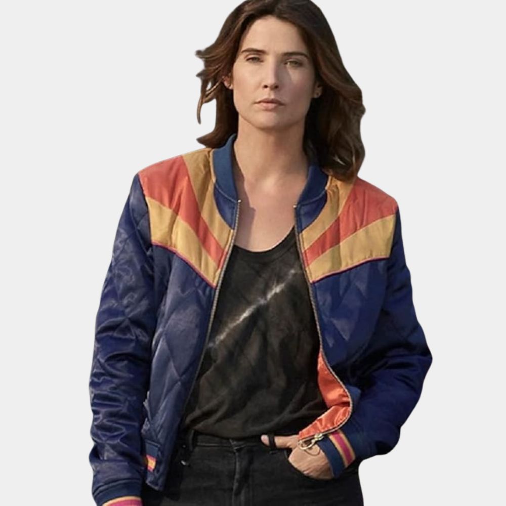 Cobie Smulders Rising Sun Blue Satin Bomber Jacket