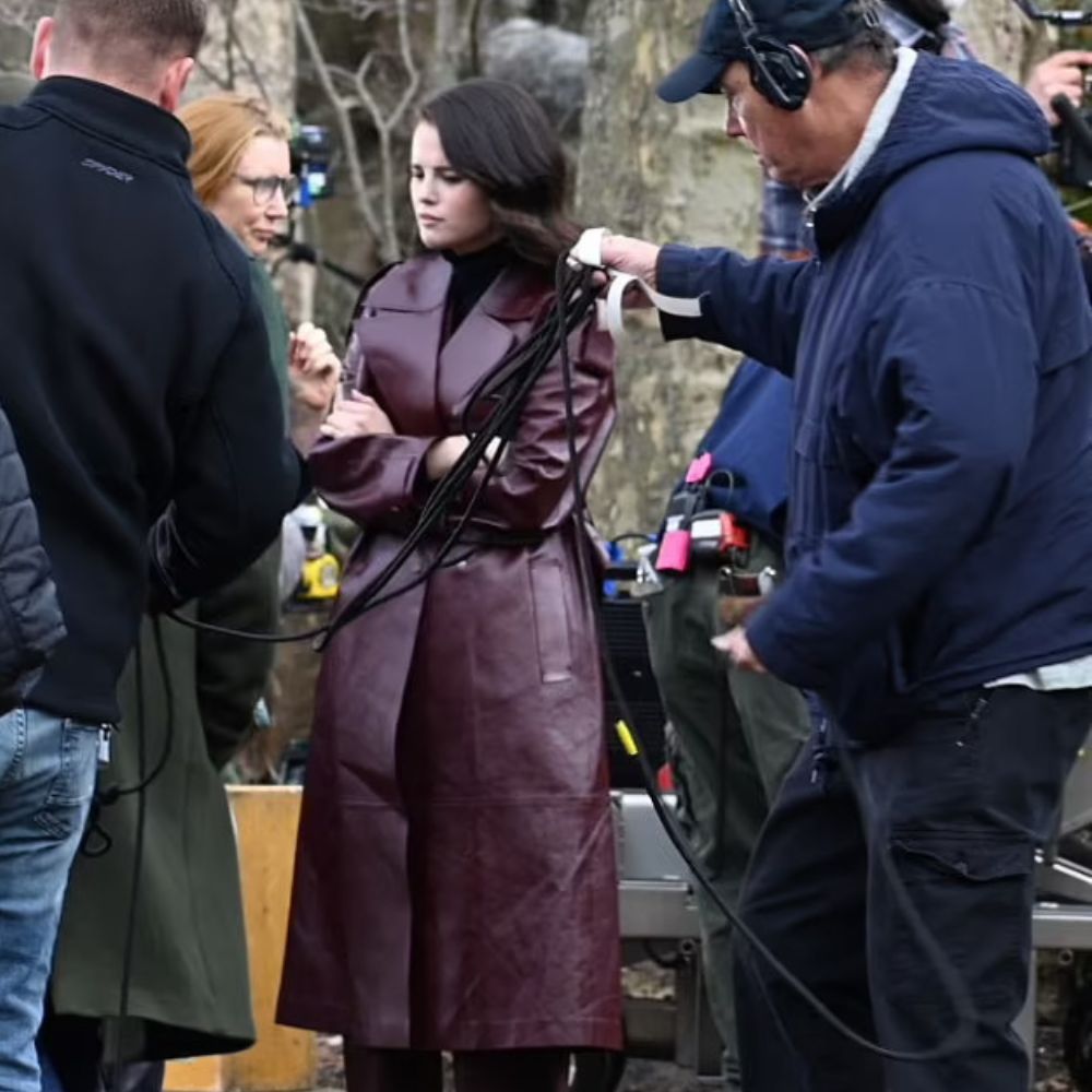 Selena Gomez has a way of commanding attention on screen, and in Only Murders in the Building Season 05 this plum toned leather coat does a lot of the talking for her. It draws inspiration from iconic New York street fashion yet feels elevated and confident. Leather has always been a symbol of strength and defiance, but here the softer plum note adds warmth and intrigue. That balance matches Mabel perfectly — she is tough and independent but still approachable with a sense of understated style that keeps people curious.