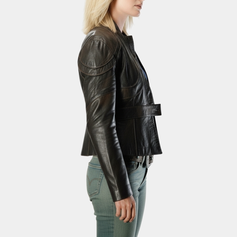 Uma Thurman  The Bride Kill Bill Vol 2 Black Leather Biker Jacket Highlights Black Mandarian collar Buttoned closure with belted Open hem cuffs Full sleeves 1 inside pocket Style & Fit 60% Loose fit Body fit   True to Size: please check our size chart. Considered a Regular Fit; please select […]