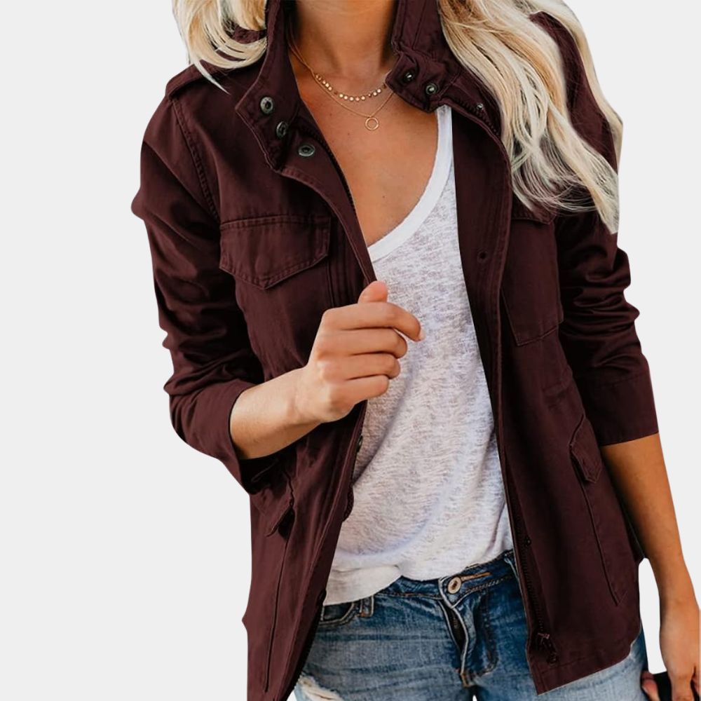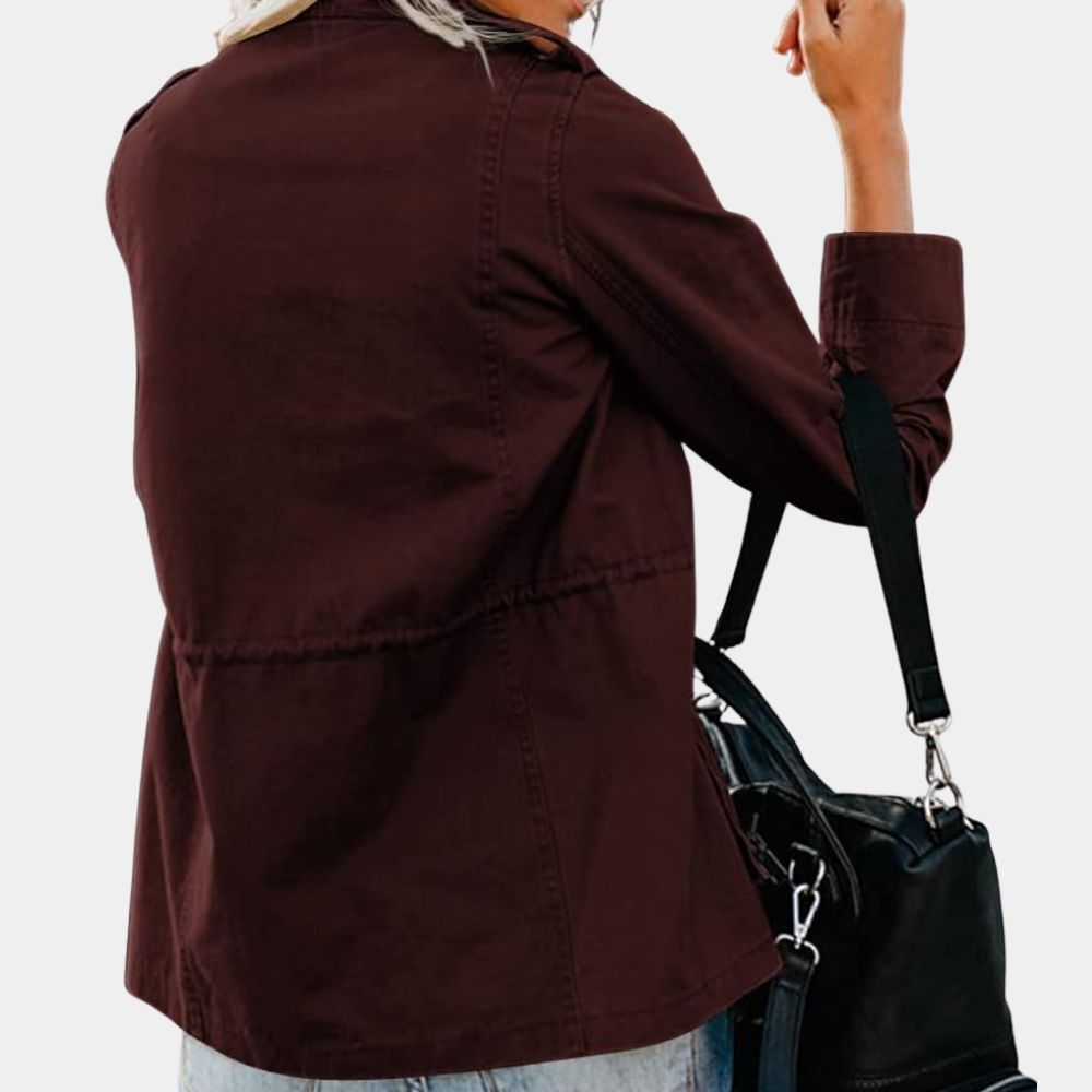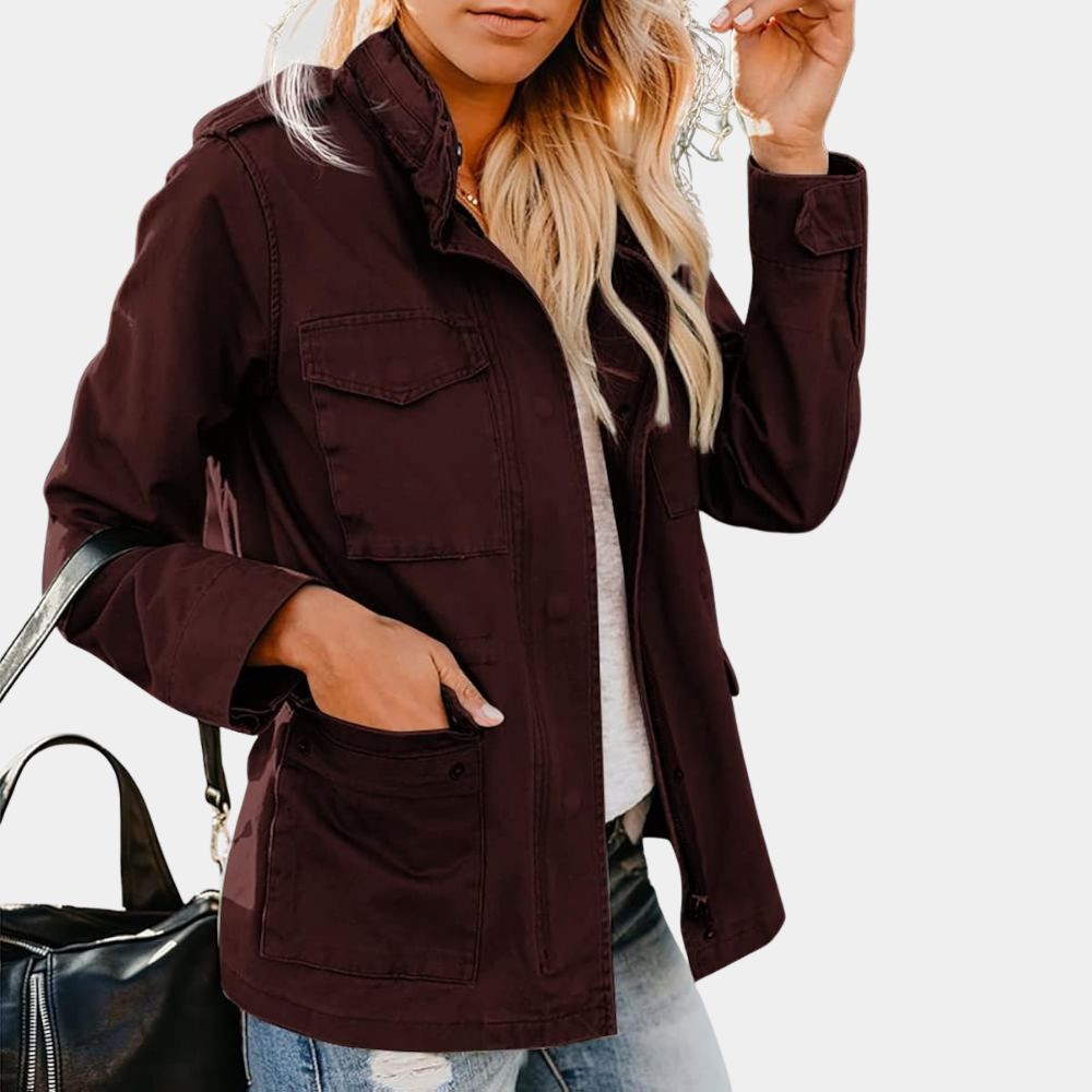 Rosemarie DeWitt’s character, Jill Bodwin, in Untamed is a refreshing mix of laid-back charm and understated strength. Jill’s journey throughout the series is one of self-discovery, with her look always echoing that quiet resilience. The maroon cotton jacket she sports in the show is the perfect reflection of her character: practical, yet effortlessly stylish. It’s a piece that keeps her looking sharp whether she’s running errands in the city or navigating a deeper emotional moment with her close-knit group of friends. The jacket’s casual design, paired with its slightly fitted cut, makes it a piece that doesn’t scream for attention but instead feels like it belongs with Jill’s grounded personality.