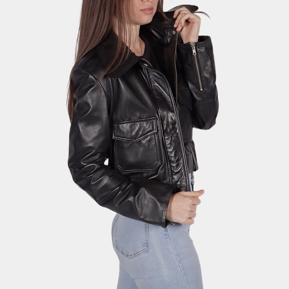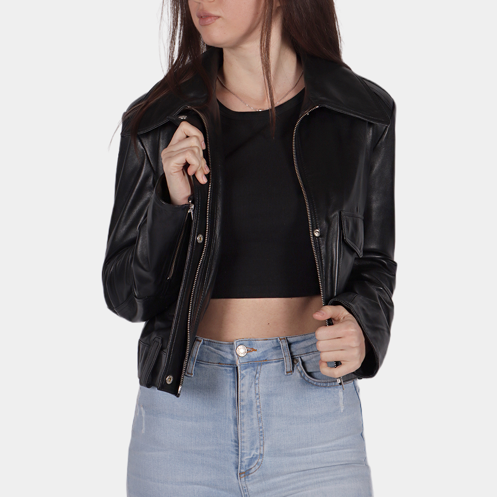 Black Leather Cropped Jacket