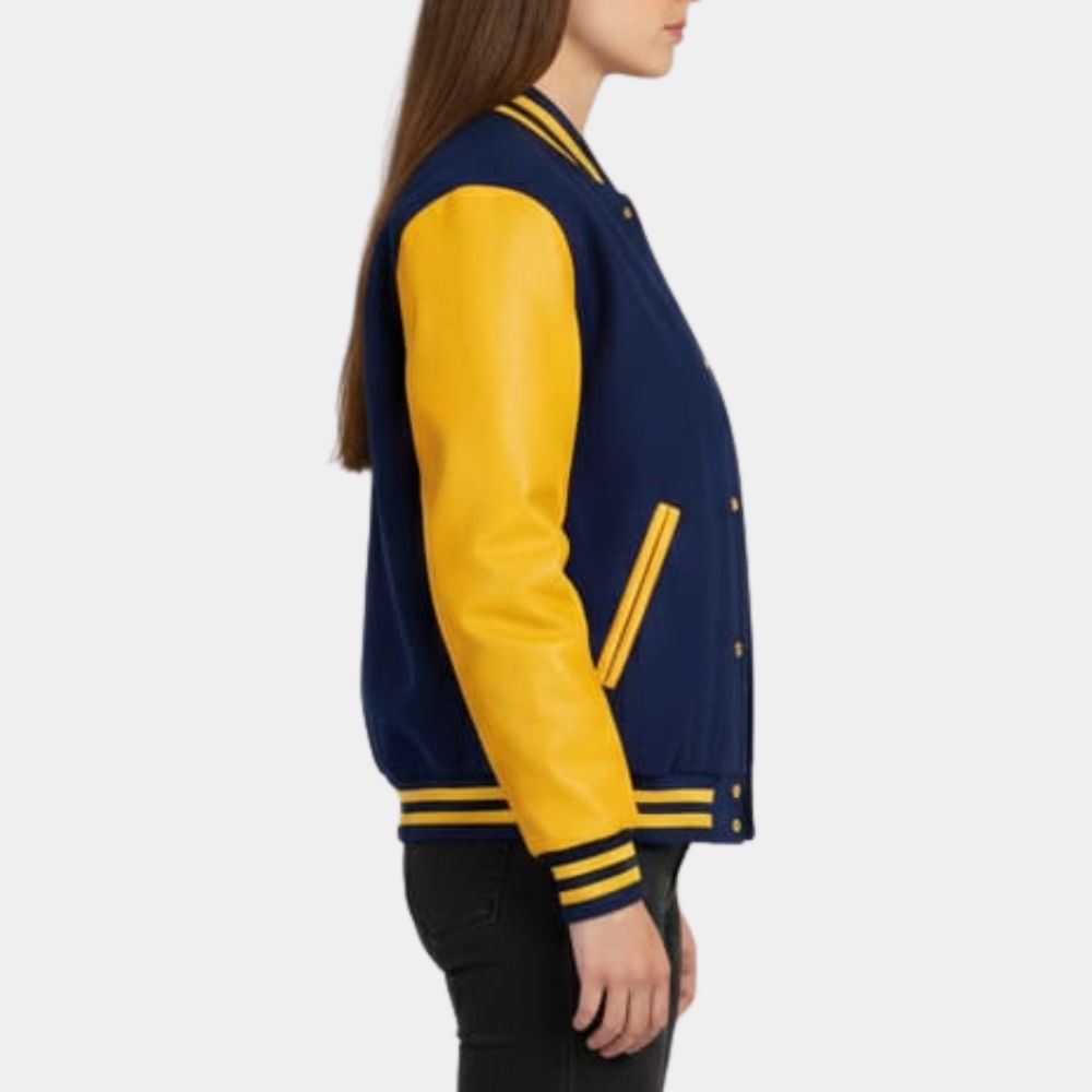 Unisex Ella Yellow and Blue Letterman Jacket
