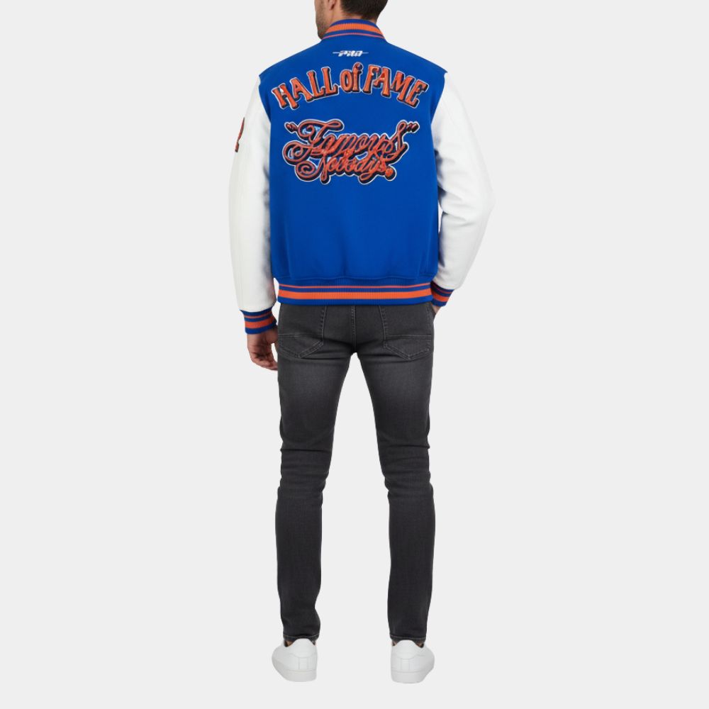 Select options This product has multiple variants. The options may be chosen on the product page Quick View$129.00 – $149.00Price range: $129.00 through $149.00 USDThis jacket is a blend of comfort and style. Crafted from a mix of warm wool and genuine leather sleeves, it offers a cozy yet durable feel. The jacket features classic ribbed collar, cuffs, and waistband, which are staples of varsity design, ensuring a snug fit and adding to its timeless aesthetic. The snap button closure and striped details emphasize its sporty roots, while the two front pockets add practicality. Its design pays homage to the traditional varsity look but with a contemporary edge, making it suitable for fans to wear casually to events, games, or social outings as a statement piece that honors legendary status and sporty elegance. This jacket stands out as a stylish tribute to Hall of Fame-worthy achievements and timeless cool.