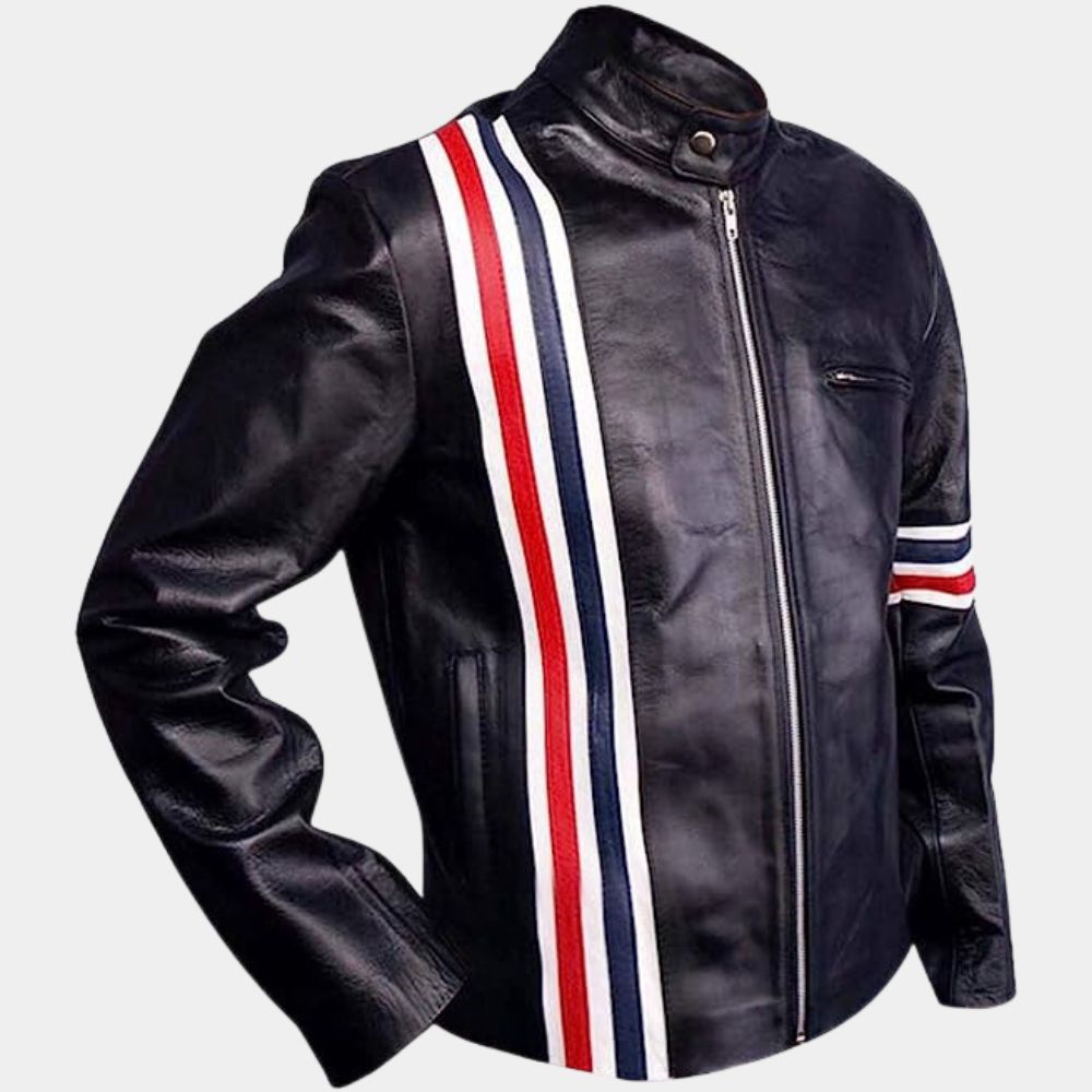 Select options This product has multiple variants. The options may be chosen on the product page Quick View$119.00 – $219.00Price range: $119.00 through $219.00 USDThe legendary actor, Peter Fonda’s character Wyatt in the movie Easy Rider, serves as a visual representation of rebellion and free spirit. Easy Rider Peter Fonda Black leather Biker Jacket exudes his fearless aura, while the US flag symbolises his deep connection to the ideals of freedom. It embodies a sense of raw masculinity and self-assurance with its classic biker design, complete with rugged details. Easy Rider Black Leather Jacket becomes a second skin for Wyatt, radiating his fierce individuality and unwavering determination.